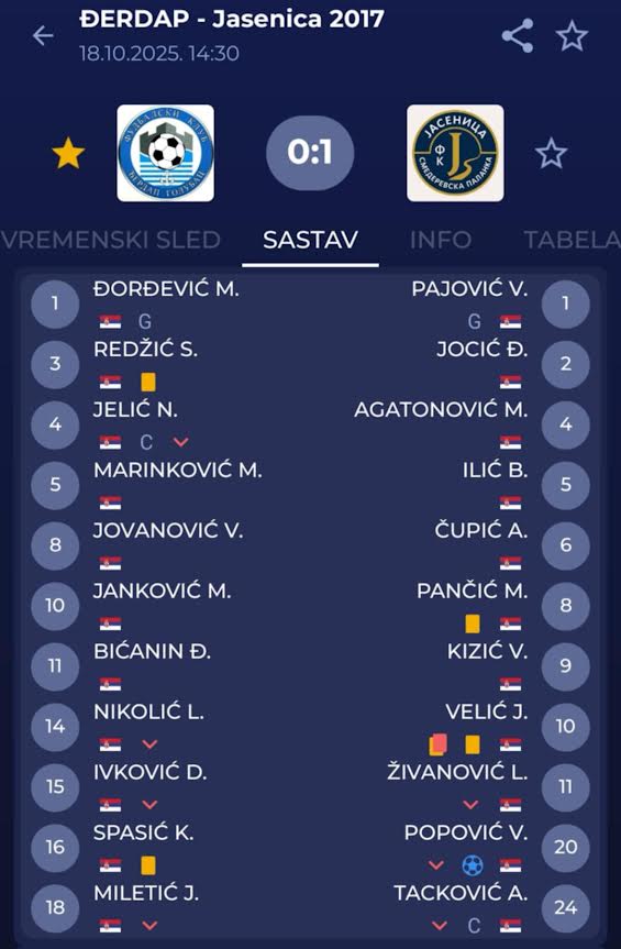 У оквиру 10. кола Зоне ,,Дунав“ ФК Ђердап из Голупца је на свом стадиону ,,Под Жутим брегом“ поражен од екипе Јасенице 2017 из Смедеревске Паланке минималним резултатом 0-1 (0-0 на полувремену). Једини гол на утакмици постигао је Велимир Поповић у 51. минуту.