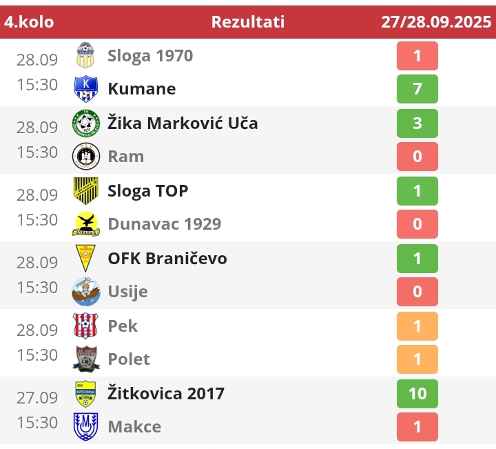 У оквиру 4. кола Удружене општинске фудбалске лиге Велико Градиште и Голубац ФК Житковица 2017 је на свом терену декласирала екипу Макца резултатом 10-1. Екипа из Житковице је још једним убедљивим тријумфом показала да је главни фаворит за виши ранг. ОФК Браничево је код куће победило екипу Усија минималним резултатом 1-0. ФК Жика Марковић Уча је у Миљевићу савладао Рам са 3-0. Полет Бикиње је на гостовању екипи Пека у Кусићу одиграо нерешено 1-1.