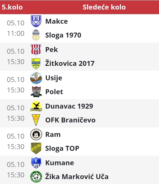Утакмице следећег кола се играју у недељу 5. октобра од 15:30 часова. Пек у Кусићу дочекује Житковицу 2017; Усије код куће игра против Полета из Бикиња; екипа Жика Марковић Уча гостује у Куману истоименој екипи; док ОФК Браничево игра у Кисиљеву против Дунавца 1929. Екипе са територије општине Голубац су у досадашњем току јесење полусезоне показале квалитет и добре резултате (од првих седам места на табели, пет заузимају клубови са подручја општине Голубац).